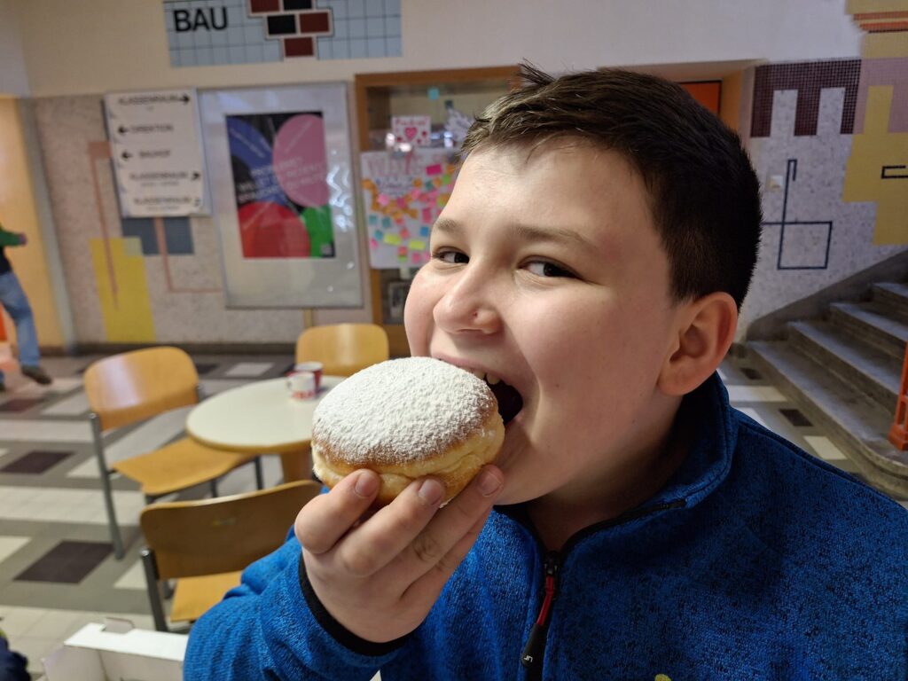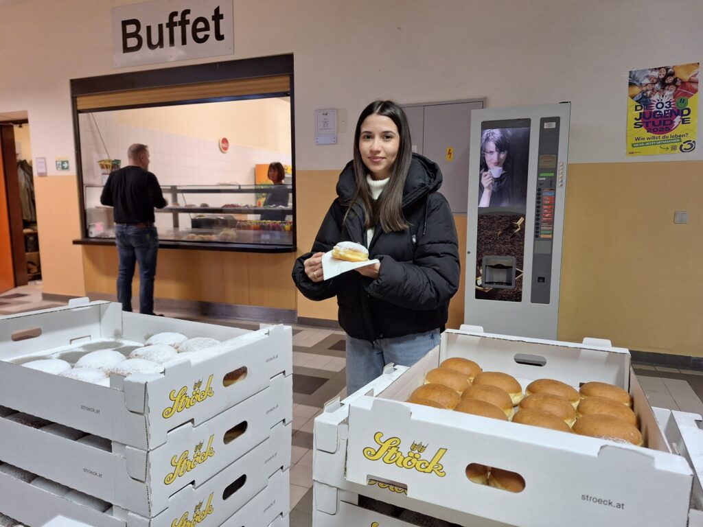 Eine schöne Tradition lebt weiter: Am Faschingsdienstag kommt die Gewerkschaft Bau Holz und spendiert Schüler:innen und Lehrer:innen der BS Bau eine Runde Krapfen, was gute Laune verbreitet und auf Aschermittwoch vorbereitet. Vielen Dank, liebe GBH!