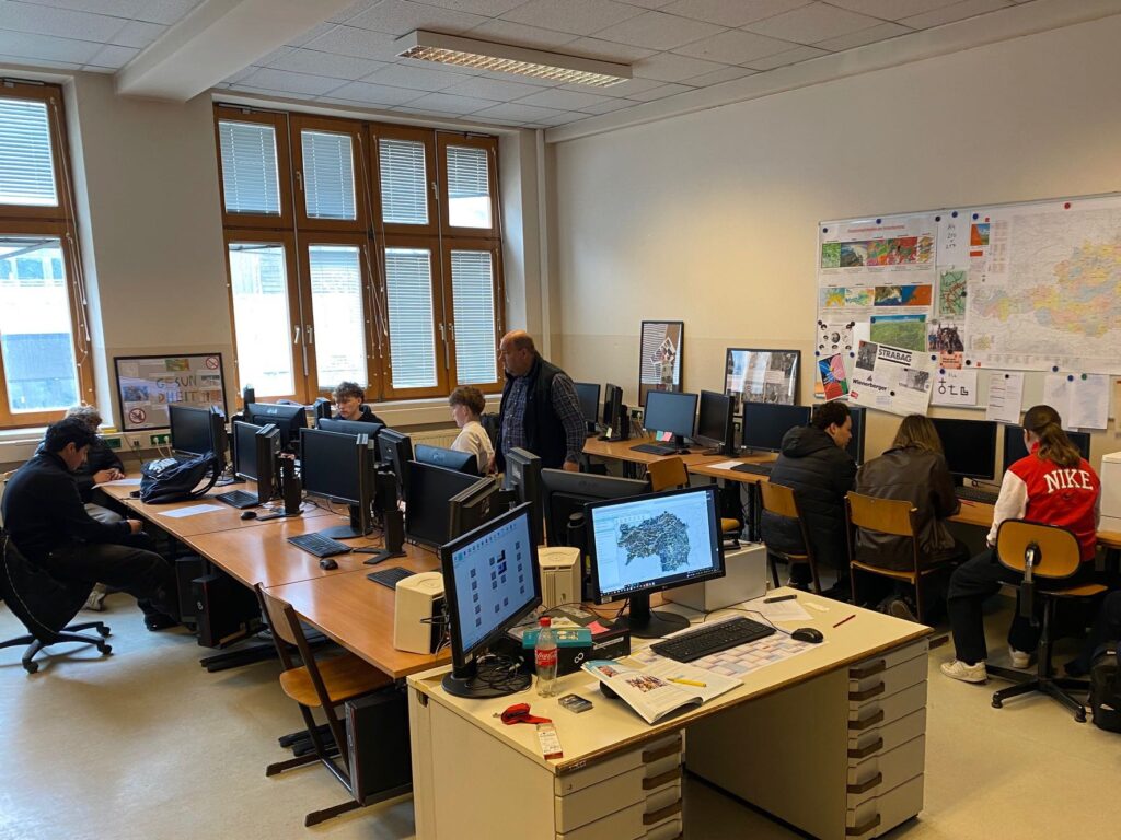 Lehre lebt von Nachwuchs und deshalb ist es uns ein Anliegen, unsere Berufe Schüler:innen der Fachmittelschule 21 und der Mittelschule Reisgasse zu präsentieren. Diese waren heute für 6 Unterrichtseinheiten bei uns an der Schule und konnten vor Ort erleben, wie in unseren Klassen und Werkstätten gearbeitet wird und auch an diversen Übungen teilnehmen. Auf den Fotos zu sehen: Baupraktischer Unterricht bei Alfred Zartl und Igor Petrenko und Unterricht bei den Geoinformationstechniker:innen unter Leitung von Werner Eberhard.